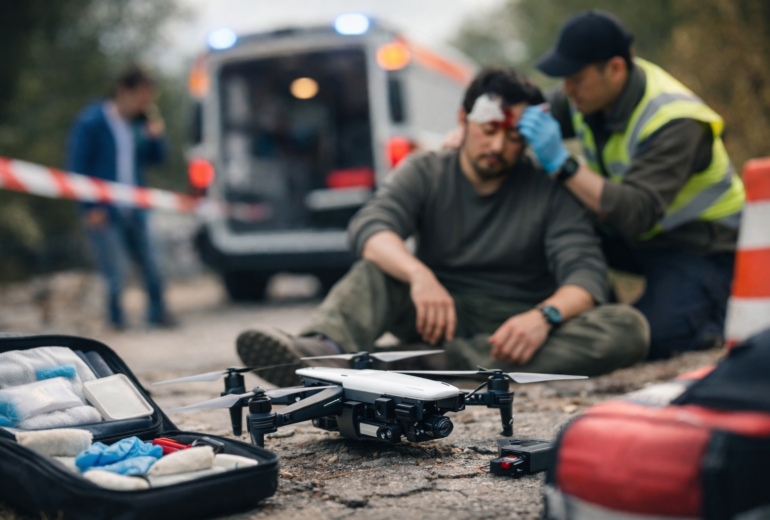 ドローン運航中の事故やケガに備えた「ドローン応急手当講習(DEC・短縮版)」を、国家資格受講者に追加費用なしで提供しています。操縦技量だけでなく、万が一の対応力まで身につけられるのは、運航事業者が運営するDOSA千葉校ならではのカリキュラムです。